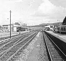 The 1887-built footbridge that spanned the station and gave access to the operating floor of the signal box was destroyed on 18 October 1987 when hit by a crane engaged in track renewals. It was replaced by a new bridge[5] which was in turn replaced by a newer footbridge and lifts in 2019.