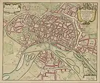 Plan of Toulouse in 1770; cathedral visible inside city wall at top right