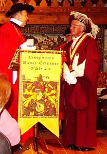 The Order of the Great Wines of Amboise being welcomed at a reception given by Alsace's Saint-Etienne Guild.