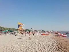 Stretching in the southwest, the Albanian Riviera is well known for its pure blue and turquoise beaches and has been a favorite destination for local and foreign visitors.[20] Aside from its beaches, it is also a destination for relaxation, tranquility, and nightlife with several music festivals such as Kala Festival and a number of renown nightclubs. Many villages and towns in the area are nationally known such as Dhërmi, Lukovë, Palasë, Qeparo and Borsh.