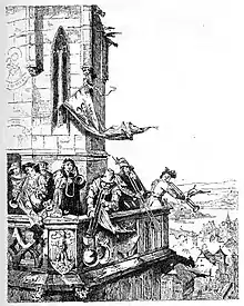 The tower used would often be a church tower, but the tower or balcony of a civic building might also be used.[4]