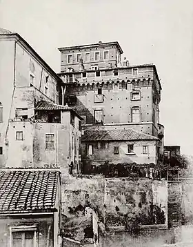 The edifice was built in the 16th century by the architect Jacopo Meleghino at the behest of Pope Paul III and demolished in 1886 as part of the construction works of the Vittoriano. Its official name was Palazzo di Aracoeli, but it was also known as Rocca Paolina and Torre Paolina.