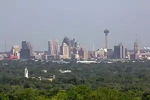 The U.S. city of San Antonio, Texas is home to 93 high-rises, 15 of which are skyscrapers that stand at least 328 feet (100 m) feet tall. The tallest structure in the city, excluding radio antennas, is the Tower of the Americas, standing 750 feet (229 m) tall. Completed for HemisFair '68, it is the tallest structure in Texas (excluding radio antennas) south of Houston, the second-tallest observation tower in the United States, and third-tallest in the Western Hemisphere. The second-tallest structure and tallest building in the city is the Marriott Rivercenter.