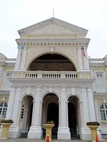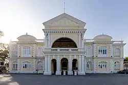 Completed in the 1880s, the Town Hall is the city's oldest municipal building, as it once housed the Municipal Commission of George Town.[1] It also functioned as a venue for social events for the European elites.[2] However, its administrative function was taken over by the City Hall upon the latter's completion in 1903. The Town Hall has been gazetted by the Malaysian National Museum as a historic monument since 1993.[3] More recently, the building became one of the filming locations for the 1999 film, Anna and the King.[4]