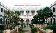 This school was founded as a primary school on 14 April 1864 by Martin, a retired English head constable at the Bhagavath Padithurai Mandapam.[1] Many people, including Ragunathaswami Rao, Rao Bhagadhur T. Gopal Rao and Gopu Subburaya Chettiar played a pivotal role in the growth of the school.[2] The Chairman of Kumbakonam Municipality, Shri. P. Thambusamy Mudaliar offered his plantain grove of 100,800 square feet for the school, at a low price.[2] The foundation stone for the main building was laid by Porter on 29 December 1881.