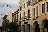The companies announced Town Square, an outdoor mixed-use project, in May 2004. The project was designed by Development Design Group, which previously designed Easton Town Center in Ohio and CocoWalk in Florida.[4] Alan J. Mayer Architect, a Boston-based firm, also worked on the project, referring to older cities such as Barcelona, Boston, New York, Paris and San Francisco for inspiration.[8][9] Town Square blends historic and modern architecture; its buildings are made of brick, glass, stone, stucco, and terracotta.[10][1][9] Designers spent considerable time to ensure that each building has subtle differences to one another.[11] The project has a total of 22 buildings,[12] and Development Design Group created 70 different storefront facades.[1] The project also includes $15 million worth of landscaping,[5] including palm-lined streets,[1] and a $3 million children's park measuring 9,000 sq ft (840 m2).[12][2][13]