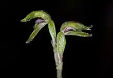 Townsonia, commonly called myrtle beech orchids is a genus of two species of flowering plants from the orchid family, Orchidaceae. They form small clusters of plants with their tubers connected, each tuber with one or two leaves. The flowers are inconspicuous.