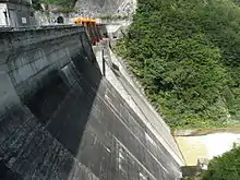 The Toyosawa Dam was designed as a solid core concrete gravity dam with a central spillway.