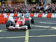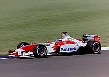 The Toyota TF103 was the car with which the Toyota F1 team competed in the 2003 Formula One season. The chassis was designed by Gustav Brunner and René Hilhorst with Luca Marmorini designing the engine. Unveiled on January 8, 2003 at the Paul Ricard circuit, its drivers were the Frenchman Olivier Panis and Brazilian Cristiano da Matta, the reigning CART FedEx Championship Series Champion from 2002.[2][3]