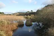 Forming part of the boundary between Tréogat and the commune of Tréguennec is the Étang de Trunvel or Trunvel pond or lake; a coastal marsh covering 264 hectares (1 sq mi) and listed as a type 1 Zone naturelle d'intérêt écologique, faunistique et floristique (ZNIEFF). The pond is a migratory destination for the aquatic warbler and provides nesting habitats for the Savi's warbler, sedge warbler, turdoid or great reed warbler, bearded reedling, bluethroat, northern wheatear and corn bunting. The marsh pea has found a home here after a hundred year absence and there are patches of common bladderwort, water germander and marsh orchid.[3]