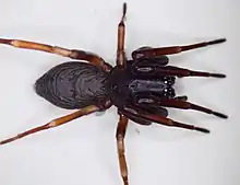 - ↑ Ramírez, Martín J. (2014). "The morphology and phylogeny of dionychan spiders (Araneae, Araneomorphae)". Bulletin of the American Museum of Natural History. 390: 331–335, 342. hdl:2246/6537.
