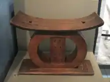 The traditional Ghanaian stool (or asesedwa in the Asante Twi language) is a carved wooden stool common in sub-Saharan West Africa, and especially common in Ghana.[1] Among the Akan it is used as a household object, it is used in rites of passage, and is considered sacred.[2]