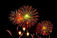 In Italy, New Year's Eve (Italian: Vigilia di Capodanno or Notte di San Silvestro) is celebrated by the observation of traditional rituals, such as wearing red underwear.[28] An ancient tradition in southern regions which is rarely followed today was disposing of old or unused items by dropping them from the window.[29] Usually the evening is spent with family or friends in a square (where concerts or various parties are organised) but also at home. Generally, starting from 10 seconds before midnight, it is customary to count down until reaching zero, thus wishing a happy new year, toasting with spumante and watching or lighting fireworks, shooting firecrackers or guns loaded with blanks. Dinner is traditionally eaten with relatives and friends. It often includes zampone or cotechino (a meal made with pig's trotters or entrails), lentils and (in Northern Italy) polenta. At 20:30, the President of Italy's address to the nation, produced by RAI, the state broadcaster, is broadcast countrywide on radio and TV networks.[30] At midnight, fireworks are displayed all across the country. Rarely followed today is the tradition that consist in eating lentil stew when the bell tolls midnight, one spoonful per bell. This is supposed to bring good fortune; the round lentils represent coins.[31]