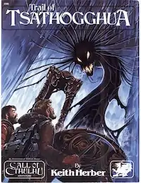 - ↑ Herber, Keith (1984). Trail of Tsathogghua. Cover by Steve Purcell. Albany, CA, USA: Chaosium. ISBN 0-933635-05-2. CHA2308. Retrieved 10 November 2020.