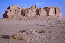 The Trakhun (Persian: تراخون, Persian: قلعه ترقون) or Trakhu is a historical, archaeological site with high-walled fortress atop a 30 m high triangular rock formation over 100 m on each side, located in the center of the Rud-i Biyaban in Nimroz Province of the Sistan region.[1] By legends and local tradition, Tarakhun is credited to be the birthplace of Rustam.[2]