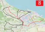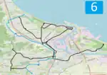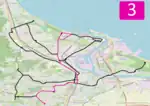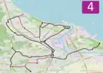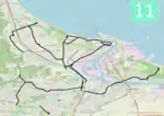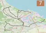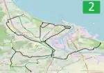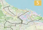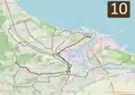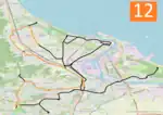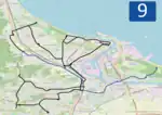 The majority of the lines are located on flat terrain; however, a notable exception is that the line to Chełm is the steepest tram line in Poland.[4] Three tram loops (Jelitkowo, Brzeźno Plaża, and Stogi Plaża) and the Brzeźno terminus are located a few hundred meters from Gdańsk Bay; consequently, the lines experience a lot of tourist traffic.