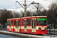 As a result of the modernization project, construction of the line to Chełm began along aleja Armii Krajowej and aleja Sikorskiego. On 19 December 2007, the line was opened for service. Because the grade of this line was up to 5%, the Konstal 105Na and Konstal 114Na trams could not be used for this line.[13] For the purposes of servicing the Chełm line, 3 Bombardier NGT6 trams were ordered. Because the Konstal 105Na trams were worsening in condition, the Gdańsk ZKM purchased 46 used N8C trams from Dortmund.