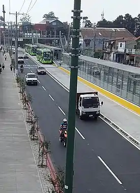 Line 12 starts from Zone 1 in Guatemala City, it runs through the Civic Centre, Bolivar Avenue, Trebol Station, Raul Aguilar Batres Way, and finally terminating at Centra Sur in Zone 12 of neighbouring Villa Nueva city. The line was certified as "Gold" under the BRT Standards in 2014.[9] In the 2023 service update, all direct transfers were removed, meaning passengers traveling on the line can only connect to other lines by walking a short distance to nearby stations. Additionally, several stations in Zone 1 were closed, while Santa Cecilia station was added.