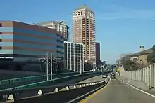 Interstate 44 passing beneath the Park Over the Highway in downtown St. Louis