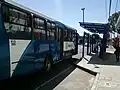 Bus stops are simple in construction, in order to allow for fast deployment of routes during the initial phases. A large station would consist of an illuminated sign with the Transurbano system logo, a metal fence facing the road, and a plastic translucent roof. Simpler bus stops were identified only by an illuminated sign on a blue metal pole. Starting February 2013, the municipality of Guatemala took responsibility for adjusting the locations and refurbishing Transurbano bus stops in the northern section of the system. Routes such as 263, 268, and 265 had some stations relocated as a result.[14] Major terminals like CENMA, Centra Norte, and Centra Atlantida are operated and maintained by the municipality of Guatemala.