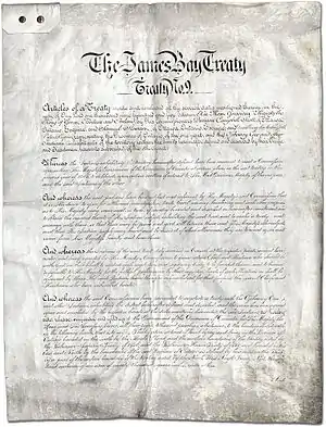![]() The first page of the written document of The James Bay Treaty (Treaty No. 9). | |