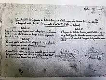 The Treaty of Björkö, also known as the Treaty of Koivisto, was a secret mutual defence accord signed on 24 July 1905 in Björkö between Wilhelm II of the German Empire and Tsar Nicholas II of Russia. Wilhelm was the chief author, but he acted without consulting his ministers. It was quickly repudiated and never took effect.[1]