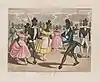 Tregear's first series was published in 1833 under the name "Life in Philadelphia." This was the same name that had been used by American illustrator Edward Williams Clay for his 1828-1830 cartoon series, published in the United States. "The cartoons were so popular that the term Life in Philadelphia became a standard phrase to refer to fashions, trends, and—most especially—black Philadelphians' social practices and sartorial choices."[1]: 137 In 1831, British illustrator William Summers redrew and enlarged ten of Clay's cartoons, which were engraved by Charles Hunt, and issued as color lithographs by London publisher Harrison Isaacs.