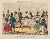 Of the twelve cartoons in Tregear's initial series, Summers designed and drew nine, two were reissues of Clay cartoons redrawn by Summers (from Isaacs), and Charles Hunt engraved all eleven as lithographs.[2] The last cartoon was credited as "Drawn & Engraved by I. Harris." "I. Harris" is now accepted as a pseudonym for Edward Williams Clay himself.[3] Another eight of the Clay cartoons redrawn by Summers (from Isaacs) were soon reissued to expand the first Tregear series to twenty plates.[4]