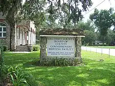 The congregation of the Trenton Church of Christ now meets at 502 Northeast 7th Street.[2] This historic church building has been adapted for use for meetings of the Gilchrist County Board of County Commissioners.