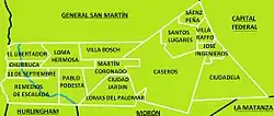 The partido of Tres de Febrero is divided into 15 settlements, the capital being: Caseros