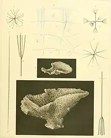 - ↑ Wilson, H.V. (1904). Reports on an Exploration off the West Coasts of Mexico, Central and South America, and off the Galapagos Islands, in charge of Alexander Agassiz, by the U.S. Fish Commission Steamer 'Albatross' during 1891, Lieut. Commander Z.L. Tanner, U.S.S., commanding. XXX. The Sponges. Memoirs of the Museum of Comparative Zoology at Harvard College. 30 (1): 1-164. page(s): 84