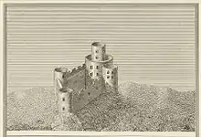 Tretower Castle, as engraved around 1800, showing an impression of its earlier and fullest extent