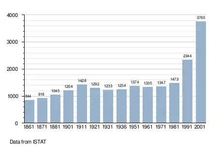 - ↑ "Popolazione Residente al 1° Gennaio 2018". Italian National Institute of Statistics. Retrieved 16 March 2019.