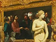 The artist also produced a pendant to the work entitled Christ with the Doctors in the Temple. Both works were originally in cardinal Carlo de' Medici's collection. On his death it passed to the Casino Mediceo di San Marco, then in 1667 the Palazzo Pitti. It finally reached its present home in the Uffizi in 1753, where it was shown in Zoffany's 1776 Tribuna of the Uffizi.[1][2]