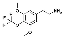 Trifluoromescaline (TF-M) is a derivative of the phenethylamine hallucinogen mescaline, which has a trifluoromethoxy group replacing the central methoxy group of mescaline. Synthesis of this compound was first reported by Daniel Trachsel in 2011, alongside many other related compounds.[1][2] Trifluoromescaline was found to be one of the most potent compounds in the series, with a reported dosage of 15–40 mg (and 60 mg being described as a "strong overdose"), and a slow onset of action and long duration of effects, lasting 14–24 hours or more.[3]
