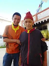 The original temple columns date from the time of King Lalitaditya in the 9th century CE. At the courtyard are large Buddhist prayer wheels and a granite lingam and small Nandi (bull) representing Shiva, while the ancient wooden pagoda-style temple is decorated with Tibetan prayer flags. Both Hindus and Buddhists celebrate the three-day Pauri Festival here in August.[10]