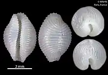 | Shell of Trivirostra hyalina (specimen at MNHN, Paris) | |