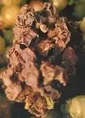 The grapes for TBA are individually picked among shrivelled with noble rot, often to the point of appearing like a raisin.[2] The shrivelling might causes the content to become concentrated,[3] very sweet and have an intensely rich flavour, frequently with a lot of caramel and honey bouquet, stone fruit notes such as apricot, and distinctive aroma of the noble rot. The finest examples are made from the Riesling grape, as this variety retains plenty of acidity even at the extreme ripeness,[2][4] and therefore age well.[1] Other grape varieties can benefit from noble rot, such as Sauvignon Blanc and Sémillon.[5]