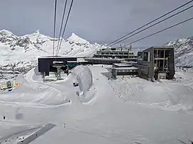 A cable car station lies on the summit and gives access to the Klein Matterhorn.