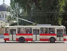 The Chișinău trolleybus system forms an important part of the public transport network in Chișinău, the capital of Moldova. The system was created shortly after the end of the World War II to replace the old electric tram system that suffered extensive damage during the war.[1] Along with the network of minibuses known as rutierele, it forms the backbone of the Chișinău transport system, with the average daily ridership reaching 250,000 passengers per day.[2][3]