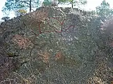 The presence of alteration in all of the extrusive levels but the very highest imply a succession of numerous hydrothermal convection cells active during eruption.[4]