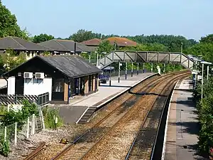 Trowbridge railway station is a railway station on the Wessex Main Line serving the county town of Trowbridge in Wiltshire, England. The station is 24 miles (39 km) south east of Bristol Temple Meads and is managed by Great Western Railway.