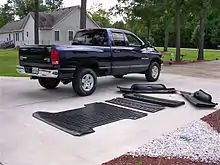 As pickup trucks were designed to haul cargo, a more advanced method was created. Thermoforming, a technique that has been around since the 1940s in acrylics and styrene, would eventually through advances in development and research create the first plastic drop-in bed liner. In 1972, G. Fred Lorenzen filed a patent for a "protective inner liner of a cargo box or body of pickup truck".[1] In 1976, Robert J. Zeffero filed a patent regarding the protection of truck beds with a "cargo box liner for pick-up trucks".[2] In 1983, Penda Corporation along with others would soon figure out a way to replicate the design and start to manufacture their own design of a bed liner.