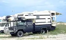 The lines of definition can blur between a truck camper and a recreational vehicle (RV) with some expedition vehicles like the xpcamper[6] or the Earthroamer. Truck campers are temporarily mounted, while the camper part of a RV are typically not designed to be easily removed from the vehicle it's attached to.