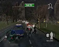 Driving missions can involve either trying to catch another car, or escape from another car. At all times, when the player is in a car, their car's condition is shown on screen. If the car's health meter empties, the car is close to destruction.[13] As with Streets of LA, during normal driving missions, the player can solve random crimes given by the radio dispatcher, although, unlike in the first game, these crimes can now take place inside buildings as well as on the streets. Additionally, the map is divided up into twenty different neighborhoods.[14] When Reed solves a random crime in a particular area, the crime rate in that area drops. After he has solved a set number of crimes in one area, that area is considered "clean," and crime rates will not increase (although random crimes will still occur within the area). If Reed continues to ignore random crimes in a given area before it is clean, the crime rate in that area will increase, leading to stores closing, dirtier streets, boarded up buildings, more aggressive civilians, and resulting in more random crimes needed to clean the area up.[15][16]