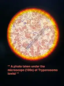 Trypanosomes in the blood of rats were first noted and described by Timothy Richards Lewis from Calcutta and the species was named after him.[5] In the 1900s, a parasitologist noticed that Rattus macleari, a species of rat endemic to Christmas Island, were becoming sick. The suspected cause was a species of trypanosomes. There was no proof that this was actually correct until scientists from the American Museum of Natural History deposited some rats that had been collected from Christmas Island as specimens into museums. Scientists argue that Trypanosoma lewisi is partially or wholly responsible for the subsequent extinction of Rattus macleari. The parasites were transmitted from fleas infesting the then recently introduced black rats (Rattus rattus).[6]