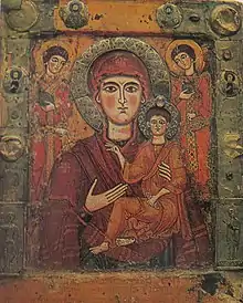 The cathedral was home to the venerated Virgin Hodegetria of Tsilkani, a 9th-century icon of the Virgin and the Child attended by the archangels. The icon was repainted and refurbished at the turn of the 12th century, but the faces painted in encaustic tempera were left untouched. In 1926, the icon was moved for preservation to the Georgian National Museum in Tbilisi.[3]