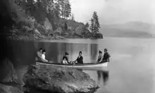 The area that now comprises Tubbs Hill was once in the 4,000,000-acre (16,000 km2) territory of the Coeur d'Alene Tribe of indians.[5] After the incorporation of the City of Coeur d'Alene, land salesmen and German immigrant Tony A. Tubbs platted what was called the “Tubbs Hill Addition to the City of Coeur d'Alene” in 1884 on an over 130-acre (0.53 km2) rectangular plot of land where he proposed several blocks.[11] Tubbs became a prominent and well liked figure in the community, building the first hotel in the city, the Hotel d'Landing and becoming the first Justice of the Peace in the city.[5] Tubbs' development had linear streets, seemingly giving no consideration for the steep hillside grade.[12] A popular sales tactic for undeveloped land employed during this time period involved pitching the plots as if it was flat, shovel-ready land that is prime for construction to unfamiliar settlers who may be buying the property sight unseen.[11] The land that made up Tubbs Hill however was far from an ideal plot on which to build upon; the development sits on an almost solid rock with a height from the hills base to its peak being over 375 feet (114 m) and on a grade that varies between 8 degrees and 30 degrees.