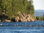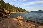 The park features beaches that provide access to the lake, a 2.2-mile (3.5 km) interpretive trail and several areas with sweeping views of Lake Coeur d'Alene.[6] Activities such as climbing, cliff jumping, kayaking, fishing, sun bathing, bird watching and flower viewing are also popular activities to do in and around the park.[7][8]