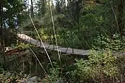There are several bridges in the park, most notably a rope suspension bridge.[5] Local wildlife conservation advocates Art Manley and Scott Reed are honored with memorial stones and plaques at the main public entrance of the trail.[10]